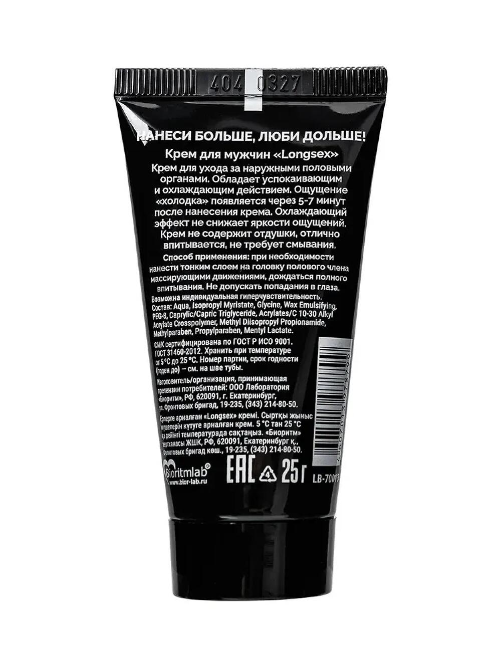 Пролонгирующий крем LongSex 18+ обладает ярко выраженным пролонгирующим эффектом. Крем легко впитывается и быстро понижает чувствительность головки полового члена.