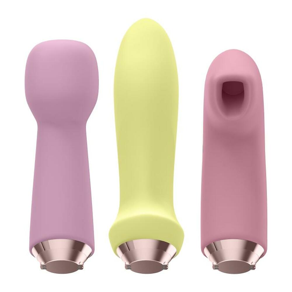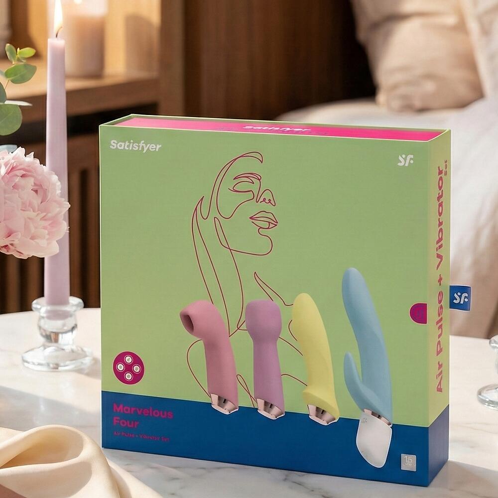 Satisfyer Marvelous Four состоит из четырех сменных изделий-бестселлеров из силикона. Наслаждайся максимальным разнообразием и универсальной стимуляцией с помощью вибратора-кролика, анального и вакуум-волнового стимуляторов, а также массажера.