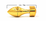 Анальная пробка под золото с ярким кристаллом внесет разнообразие в вашу интимную жизнь. Обладает сглаженной формой, что позволяет обеспечить легкое введение и комфортное длительное ношение. Снабжена ограничительным основанием для безопасного использования. Характеристики: Общая длина 7,8 см, высота основания 1,8 см, рабочая длина 6 см,наибольший диаметр: 2,9 см., вес 80 гр. Упаковка: индивидуальный тканевый мешочек и коробка.