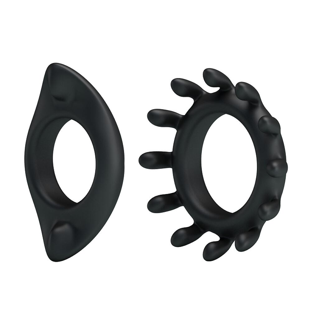 Набор эрекционных колец черного цвета для дополнительной стимуляции. Эластичные, легко растягиваются до необходимого размера. Эта маленькая изюминка поможет украсить сексуальную жизнь - усилить эрекцию и сделать половой акт более продолжительным. Характеристика: вес колец- 6 и 7 гр, внешний диаметр колец- 3,6 и 5,4 см, внутренний диаметр отверстий- 2,5 и 2,7 см.