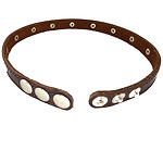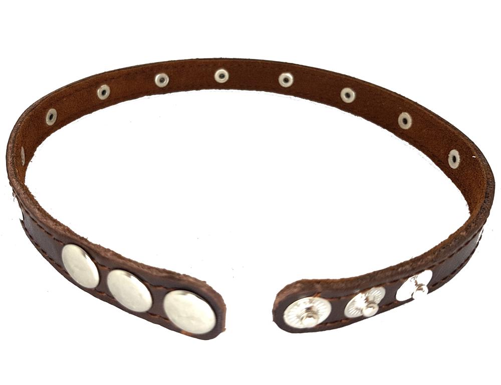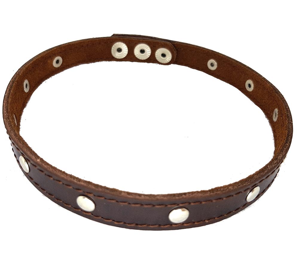 Ошейник из натуральной кожи.Подкладка выполнена из мягкой замши коричневого цвета. Регулировка размера осуществляется кнопками. Ширина 15 мм