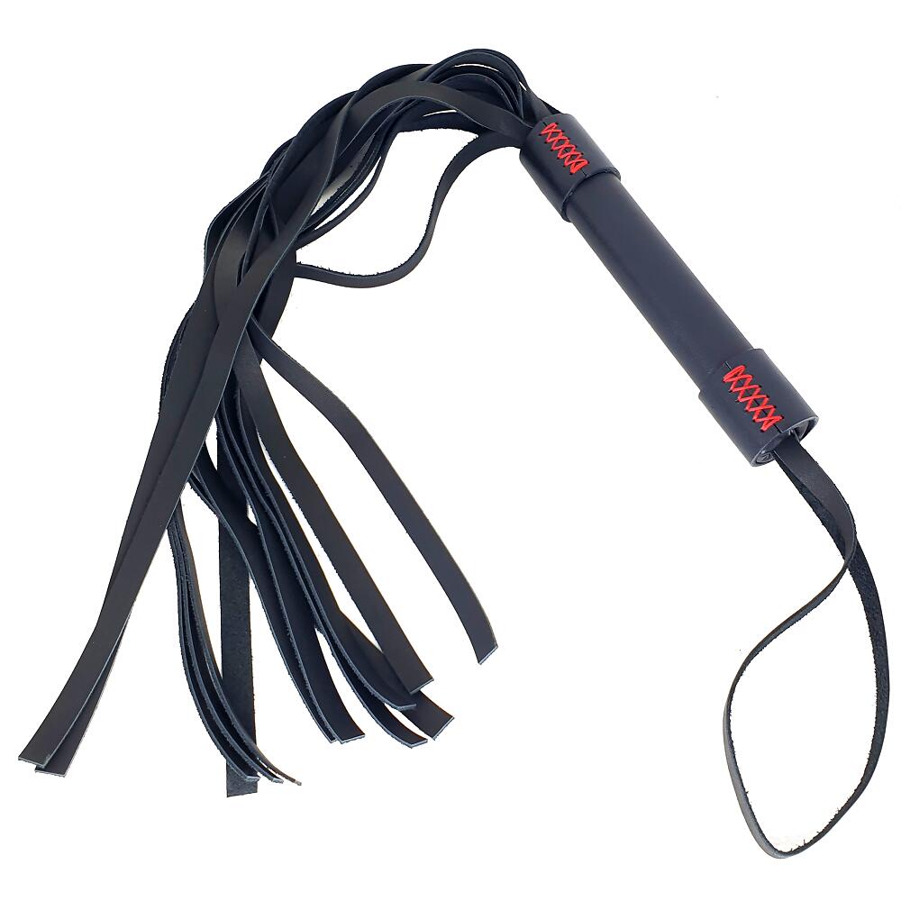 Плётка из натуральной кожи. Ручка - чёрная, хвосты 45 см - чёрная кожа.