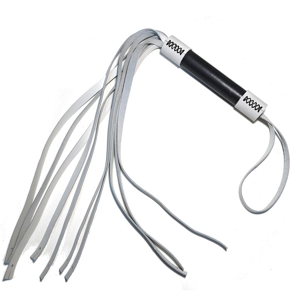 Плеть изготовлена из натуральной кожи чёрного и красного цвета. 10 хвостов. Общая длина 57 см. Длина хвостов 39 см.