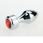 Анальная пробка металл серебро с красным стразом 7,8х2,9см