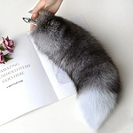 Металлическая анальная пробка с лисьим хвостом серая 40см