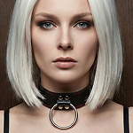 Ошейник с кольцом чёрный кожаный